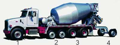 A pusher axle/suspension is usually installed behind the rear drive axle(s) on straight trucks and trailers. This suspension, (No.4) is known as a tag axle in the industry.
